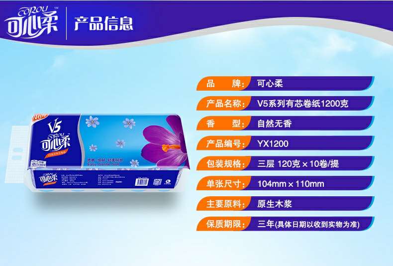 可心柔 V5系列CoRou云柔系列白色木浆40抽